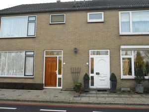 (*) Links woonhuizen met muurtjes ervoor, die de mogelijkheid bieden tot het plaatsen van vloedplanken bij hoog buitenwater. De dijk was een waterkerende dijk. Rechts de R.K. lagere school.