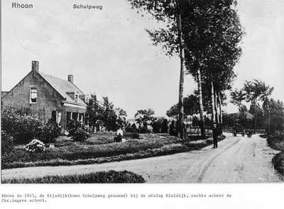 1910ca 1915Rijsdijk hoek Kleidijk. Toen Schulpweg genoemd in 1915. Rechts de chr. lagere school.Rijsdijk hoek Kleidijk ca 1959, rechts de chr. lagere school.Rijsdijk hoek Kleidijk 1980Rijsdijk hoek Kleidijk 1998Rijsdijk hoek Kleidijk november 2013